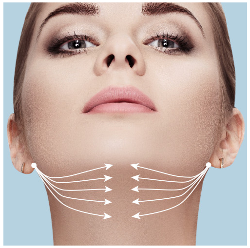 - Lifting of sagging skin in the lower third of the face (second chin, cheekbones, cheeks)